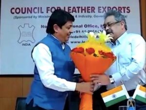 Shri Motilal Sethi, Regional Chairman – North felicitating Shri Sanjay Leekha, Chairman Council for Leather Exports.